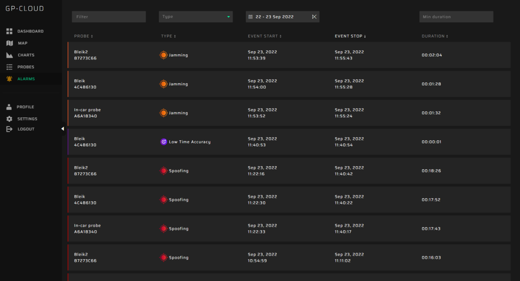 Never miss a critical GNSS event again! GP-Cloud logs all detected events such as spoofing, jamming, anomalies and more, and sends instant notifications to keep you informed and in control.