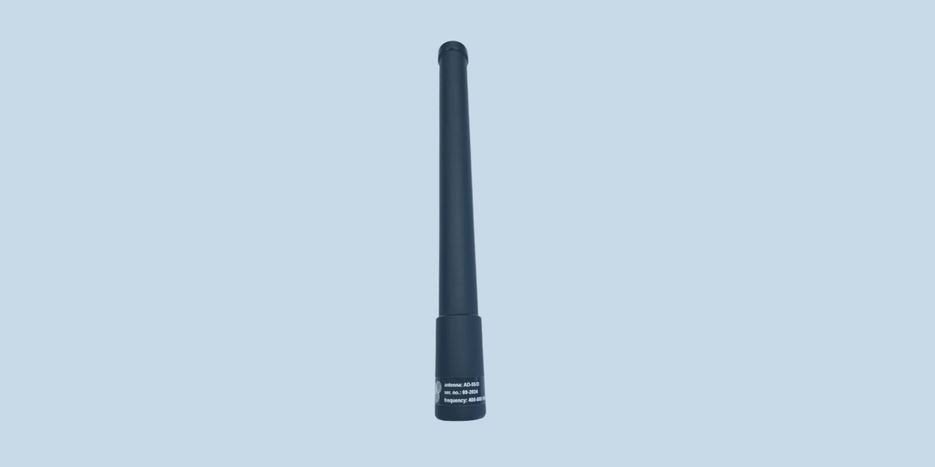 The antenna AD-55/D is wideband manpack antenna intended for use with modern broadband software-defined radios (SDR) and other radio devices (jammers, scanners, etc.). The antenna is a sleeve dipole center fed design thus enable to work without the presence of the ground plane. The radiation part of the antenna is fully enclosed in a fiberglass radome. The antenna construction is rugged and intended for use in the harshest military environments. The antenna connector is N male.